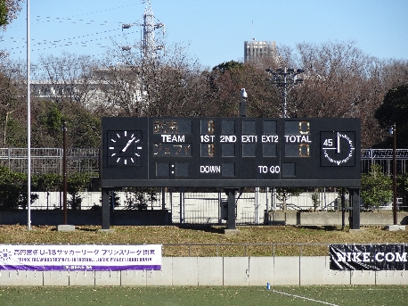 福田(3年)の得点が決まり、2点を先取し、前半を折り返す。