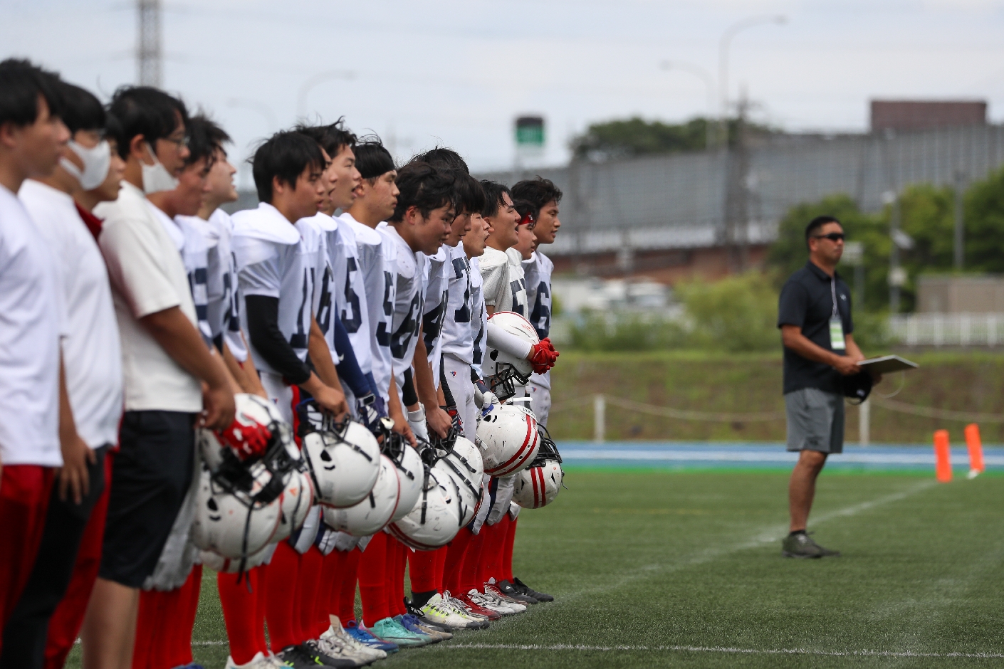 「中学時代に部活動において優秀な成績を出した生徒はいませんが、コツコツと努力を重ねる生徒は短期間で突然うまくなることがあります。そこが一番指導者としてうれしいことです。さらに、もともとは違う部活に入っていたけど、うまくいかずに途中からアメフト部に入部して頑張って試合に出ている生徒もおり、うれしく思います。また、徐々にではありますが、大学で続けてくれる生徒が増えてきました。4年間大きな怪我無く、頑張ってほしいと願っております」