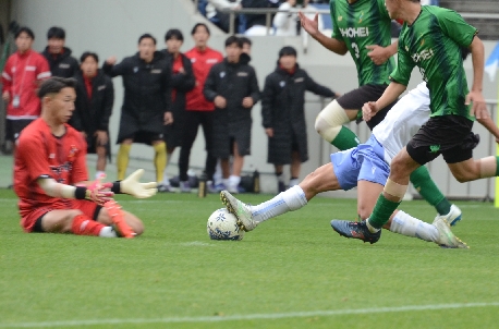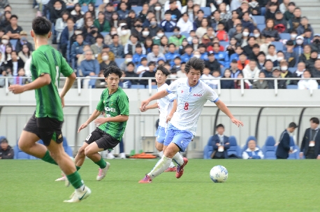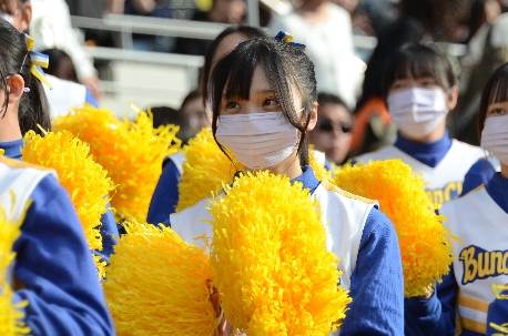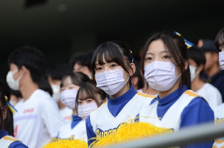 スタンドで声を枯らすサッカー部員、声援を送るチア部員。実は、高校2年生は明日からオーストラリア修学旅行のため、インフルエンザ感染対策でマスク越しの応援となり、声が出しにくそう…。チア部員は、それでもキラキラしたまなざしで、選手たちの背中を押す応援をしていました。