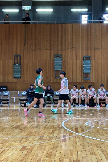 試合では自分の強みのリバウンドを活かせていた場面もあり、ボールをポストでもらった後の1対1の場面でまだ技術が足りなく悔しい思いをしたけどベンチに戻って来て仲間たちや先生方がハイタッチをしてくれたり、良かった所を言ってくれて自分の次に試合に出る時のモチベーションになり、このチームで本当に良かったと感じました。試合を通してディフェンスの強度を高め、ポストでの1対1の個人技などを日々の練習や試合で取り組んでいきたいです。そしてこの選抜の期間で得た経験とサポートをしてくださった周りの先生たちへの感謝を忘れません。