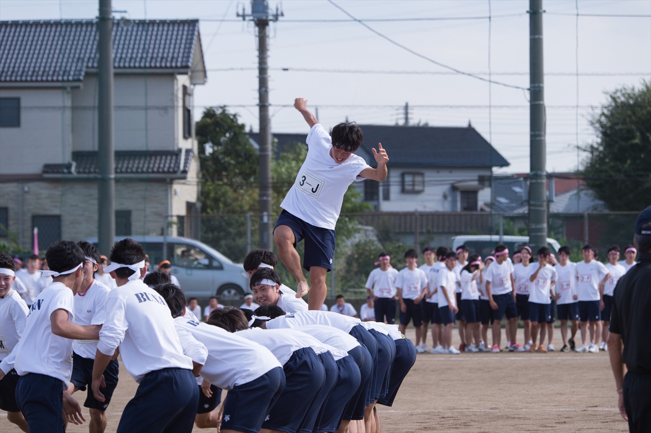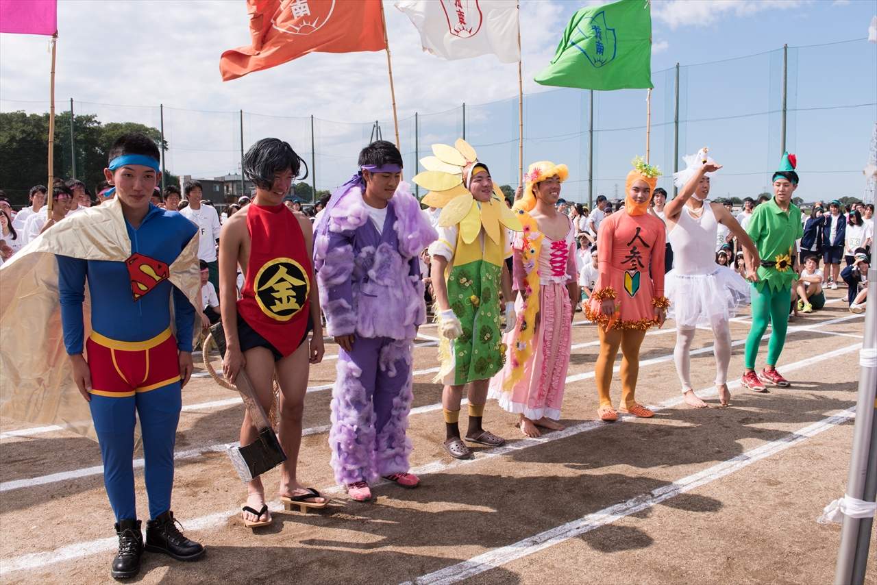 体育祭が行われました。 2015/10/01 去る9月29日、秋晴れという言葉がまさにぴったりの日に、体育祭が行われました。今年は50回記念ということもあり、仮装大会という新しい種目もありました。生徒1人1人がそれぞれの競技に全力を尽くしていて、見ているこちらもときに興奮し、時に笑い、そして感動をもらいました。生徒の皆さん、お疲れ様でした。そしてありがとう! 写真でその一部を紹介いたします。