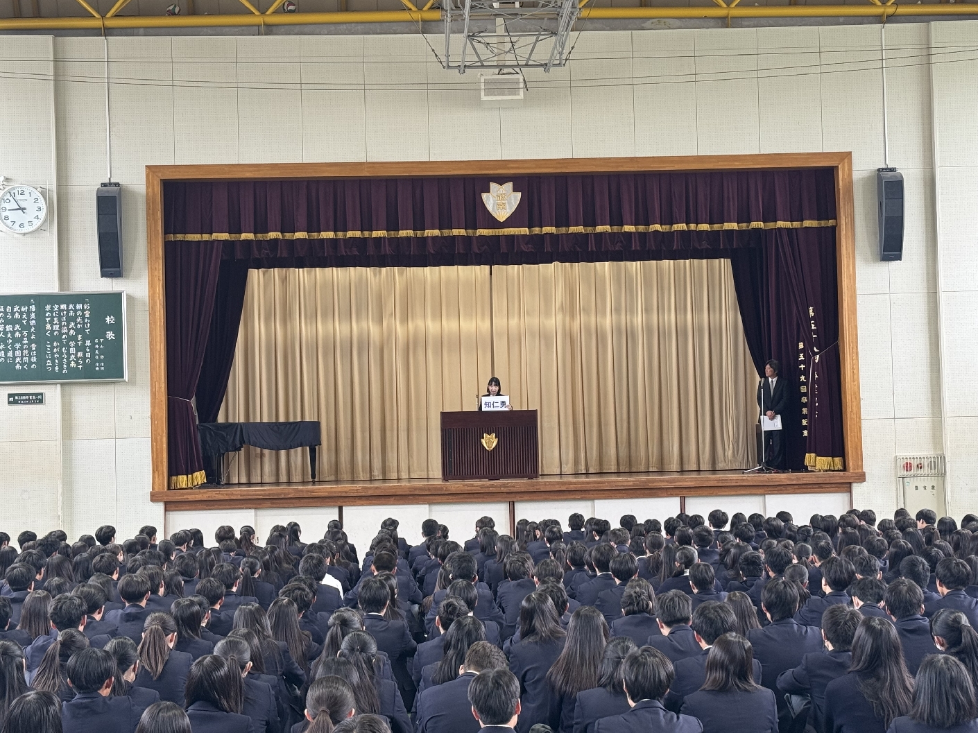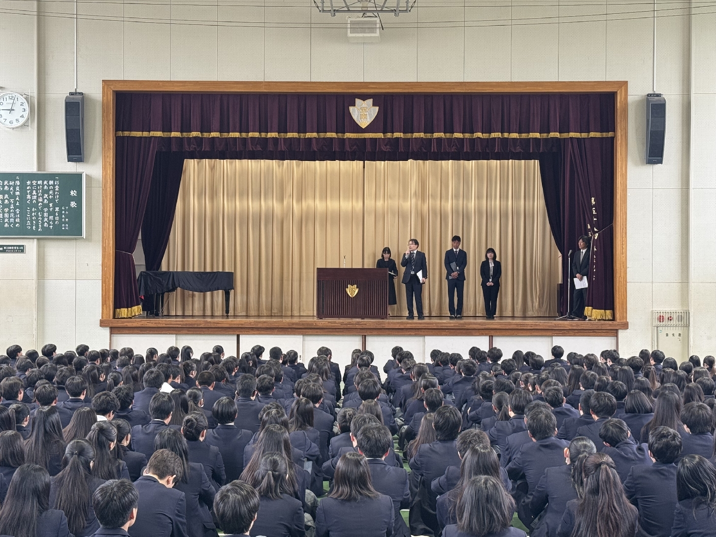 これらは本校の建学の精神「自主・自立・自学・協同」にも通じる大切な指針です。3年生は進路実現に向けて最後まで妥協せず、2年生は学校の中核として武南学園に活気をもたらしてくれることを期待しています。