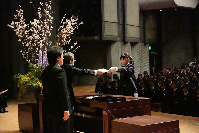「卒業証書授与の代表生徒として校長先生から証書を直接頂けたときです。」