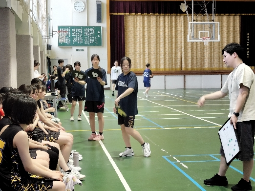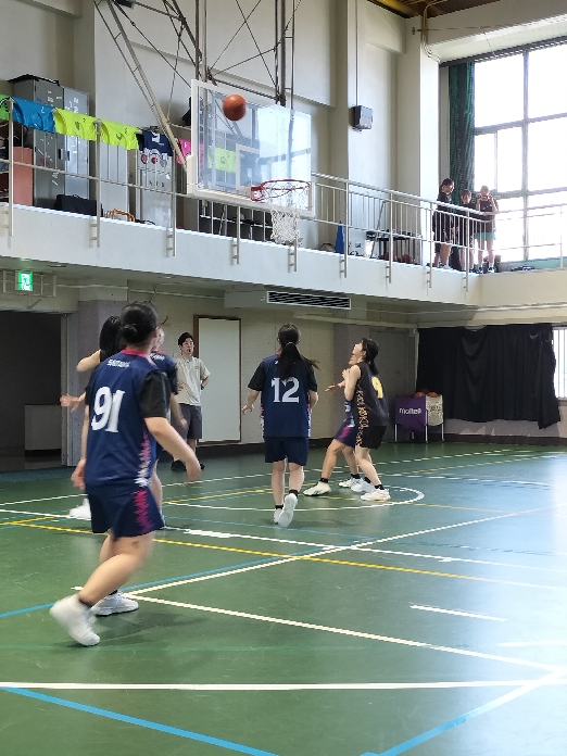 4月19日(日)、校内から聞こえてくる元気な声に導かれ、体育館へ足を運びました。そこでは、女子バスケットボール部が細田学園高校を本校に迎え、練習試合を行っていました。