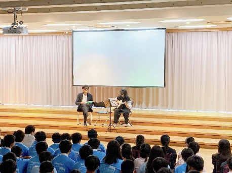 有志団体では科学部の発表や英語スピーチコンテスト出場者のスピーチ発表、ギター弾き語り、三年生男女によるダンスの披露などがありました。