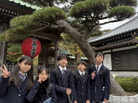 鶴岡八幡宮、高徳院(鎌倉大仏)、円覚寺、建長寺、銭洗弁財天などをチェックポイントとして巡り、鎌倉の歴史と文化について学びを深める一日になりました。生徒たちは、事前学習で得た知識と、現地での新たな発見を結びつけながら、主体的に探究を進めていました。
