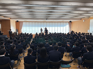 続いて、生徒指導部の高野先生は、行動の基準を「ばれるかどうか」や「怒られるから」ではなく、なぜその課題や校則があるのかを考えて行動することが大切だと話しました。そして、冬休み中は生活リズムやスマホの使い方に気をつけ、安全に過ごすように注意を促しました。