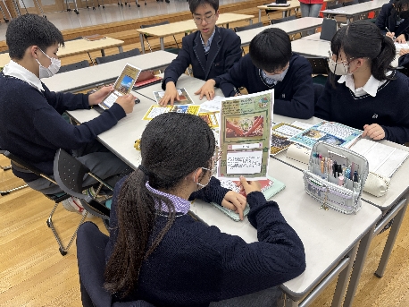 最初に、マダガスカルの国情や、気候変動によって抱えている課題について解説を受け、クイズを交えた活動を通して、楽しみながら理解を深めました。その後、日本で起きている自然災害や身近な防災について調べ、「武南中学校の紹介」「気候変動による自然災害」「身近な防災対策」の中からテーマを選び、「まちフォト」を作成。調査を進める中で、日本の災害の現状や、防災・復興支援の体制について学びを深めることができました。