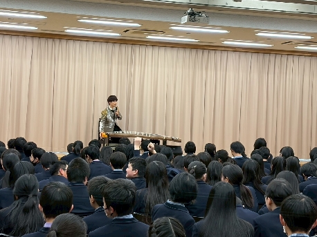 2月4日(水)、芸術鑑賞教室の一環として、”箏男 kotomen” こと大川義秋さんをお迎えし、箏の演奏会を開催しました。
