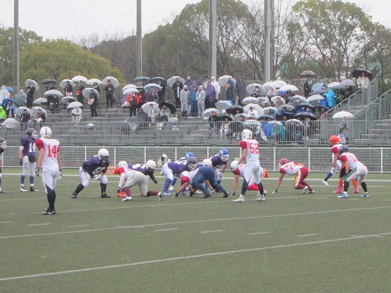 12月28日にSTICKボウル、1月8日にニューイヤーボウルと2つのボウルゲームがあり本校から、2年生の選抜理系クラスに所属する黒須君が選出されました。試合は、STICKボウルは東京選抜とニューイヤーボウルは兵庫選抜との試合でしたが、いずれもディフェンスチームの奮闘により勝利する事が出来ました。特に雨の中、大阪の万博フィールドで行われたニューイヤーボウルは高校フットボール界の憧れのチームで今年度のクリスマスボウルにも出場した関西学院高等部率いる兵庫選抜と互角に戦い、最後のプレーで勝利を手にするという素晴らしいゲームになりました。DLとして選出された黒須君も随所に光るプレーが見られ勝利に貢献しました。本校から一人の選出は寂しいものがありましたが、選抜の練習会や新幹線での大阪遠征など貴重な経験をする事が出来たのではないかと思います。