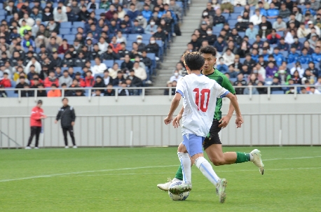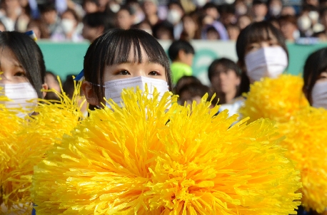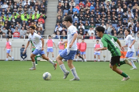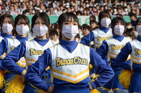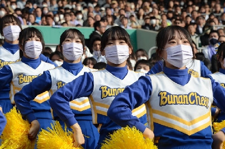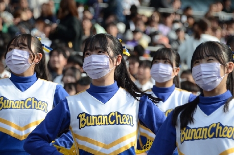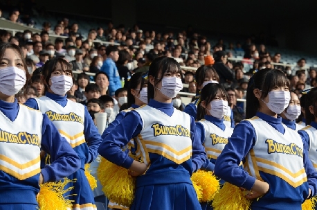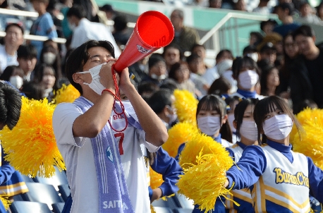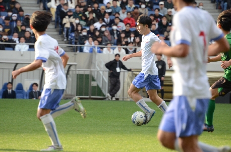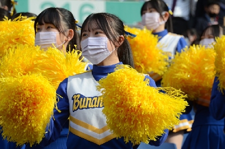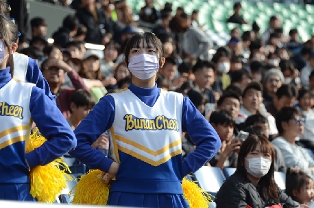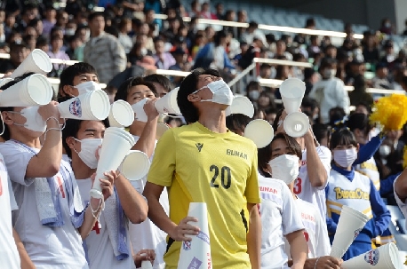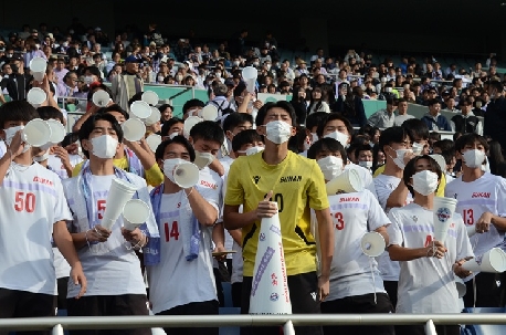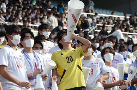 スタンドで声を枯らすサッカー部員、声援を送るチア部員。実は、高校2年生は明日からオーストラリア修学旅行のため、インフルエンザ感染対策でマスク越しの応援となり、声が出しにくそう…。チア部員は、それでもキラキラしたまなざしで、選手たちの背中を押す応援をしていました。
