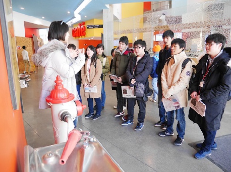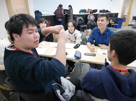 In the afternoon, we had Massachusetts Institute of Technology campus tour. Three Japanese coordinators who are from Massachusetts Institute of Technology guided us around the campus. One of the coordinators, Noriko Endou took us to a famous spots. If we touch the nose of statue, we will be good at math. Hiroki touched it softly. Each coordinator's story about the campus life were very attractive. She said to Japanese students,"I hope it is essential for Japan to make its presence known everywhere in the world." She taught us how to pass the entrance exams of university in the U.S. We learned what is the big difference between entarance exams in Japan and S.A.T. in the U.S. ” Kohei said, "She is amazing. Her story is exciting. After I heard what she had said, I wanted to study abroad in the future."