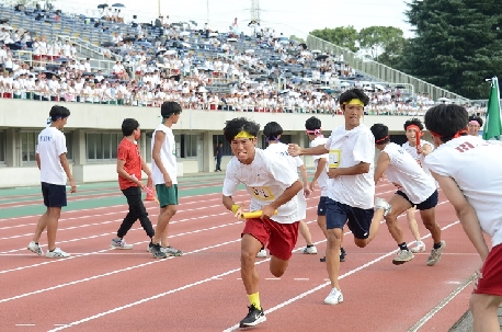 体育祭 2023/09/21 今年の体育祭も、熱中症、コロナ感染に注意しての開催となりました。 『走る』というシンプルな行為でも、体育祭という舞台が用意されると、色々なことに気づき、気づかされ、普段は見せないクラスメイトの姿に感動すら覚えます。こんなに真剣に走るのは、もう高校時代で最後かもしれませんね。そんな貴重な1回を、全力で盛り上げる生徒の姿をたくさん目撃できる体育祭となりました。 放送部の皆さん 放送部インタビュー