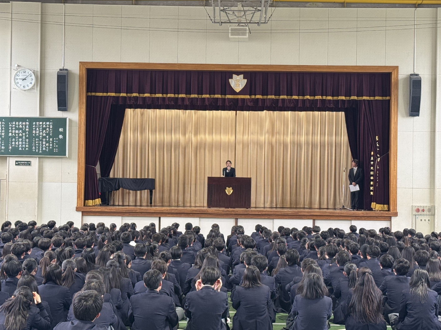 これらは本校の建学の精神「自主・自立・自学・協同」にも通じる大切な指針です。3年生は進路実現に向けて最後まで妥協せず、2年生は学校の中核として武南学園に活気をもたらしてくれることを期待しています。