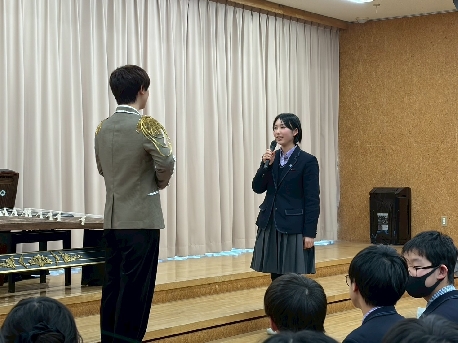 メディアホールいっぱいに広がる箏の響きは、繊細でありながら力強く、その一本一本の弦から生まれる世界に、会場はすぐに魅了されました。「春の海」などの伝統曲に加え、生徒からのリクエストに応えてディズニーソングやジブリ作品の曲を即興で披露してくださり、会場には驚きと感嘆の声が上がりました。さらに、ご自身のオリジナル曲「Flower」も演奏していただき、音楽に浸る貴重な時間となりました。
