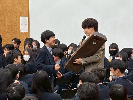 2月4日(水)、芸術鑑賞教室の一環として、”箏男 kotomen” こと大川義秋さんをお迎えし、箏の演奏会を開催しました。